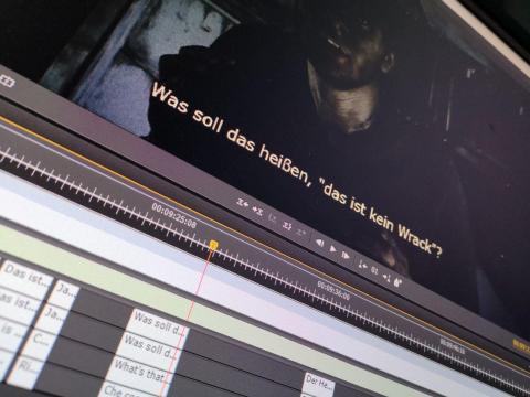 Heute saß Marcel den ganzen Tag an den Untertiteln, die dereinst auf DVD/Bluray verfügbar sein sollen. Es wurden 652 englische Untertitel verarbeitet (danke Frank Bongiovanni aus Münster, gebürtig New York City, für deine Arbeit!) und weitere 652 italienische (sehr gut, dass wir die haben - danke Stefano Locati aus Mailand!). Dann wurden (für die Vollständigkeit) noch deutsche erstellt UND natürlich auch deutsche für Hörgeschädigte. Das waren zunächst ein paar weniger, denn die Logbucheinträge sind ja bereits deutsch. Dann wurden es aber wieder mehr, da ja vor allem noch "Geräusche" dazukamen, wie *Sturm*, *Dumpfe Schritte* oder... *Explosion*! Richtig gelesen, Explosion...